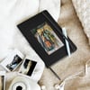 If you want a chic, easy to carry around notebook, ready to jot down notes, poetry - or use as your prayer or bible study journal, this notebook has 80 lovely feeling lined pages, cream-colored to be easy on the eyes, a built-in elastic closure, and a matching ribbon page marker. I've added a detail photo from one of my doll's charm sets, which includes a jadeite stone cross. Plus, the expandable inner pocket is perfect for storing loose notes and business cards, so you’ll never lose track of important information. You can choose from all these lovely colors.